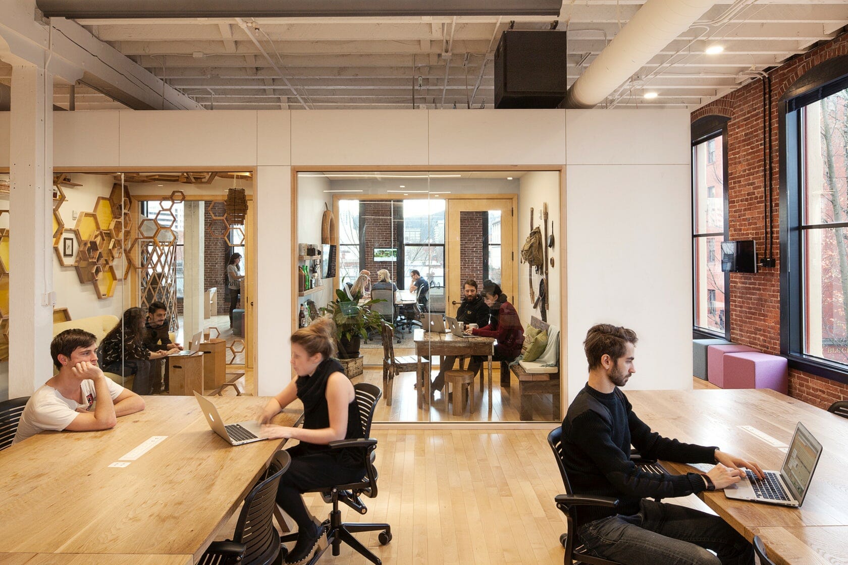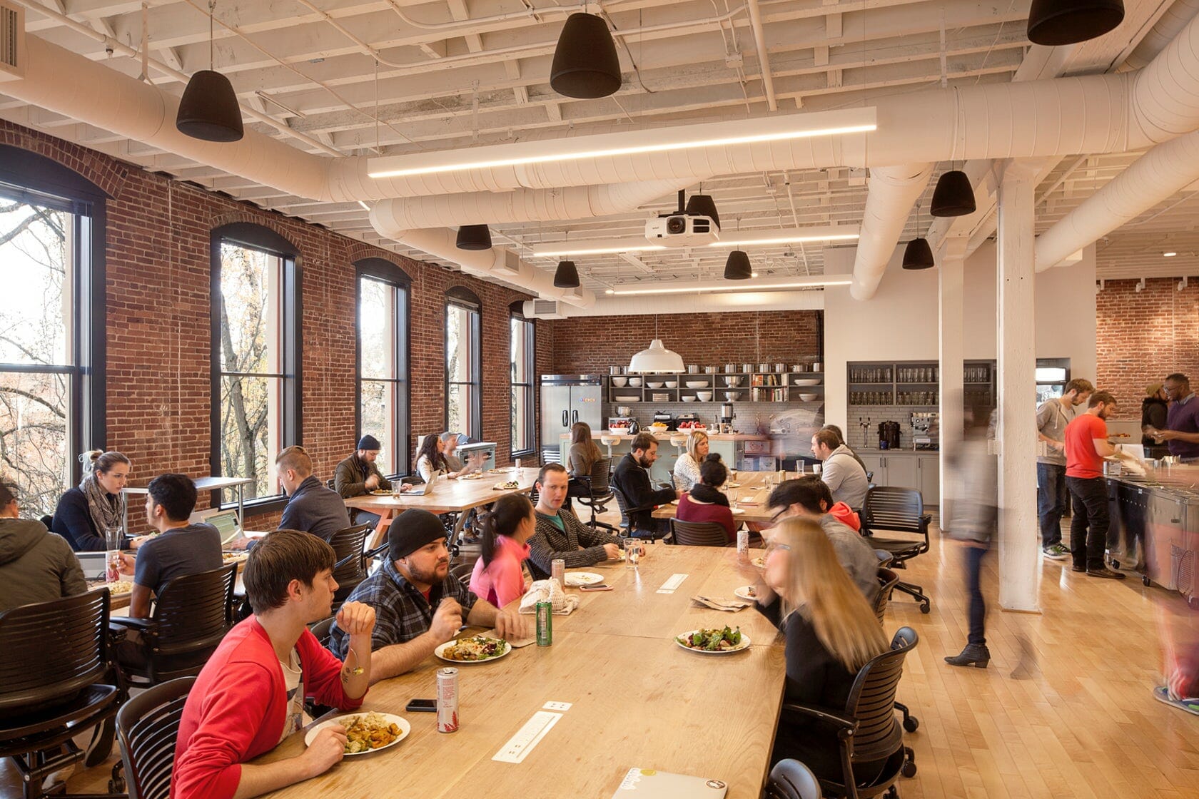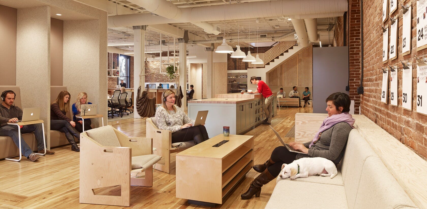 Airbnb’s Customer Experience Hub in Portland inhabits 20,000 square feet on two floors in the historic White Stag building that reflects true Airbnb listings from around the world. Custom elements like standing height “Landing Zones” create a home base for teams, accommodating the need for personal storage and providing an alternate work configuration for the agents. Interspersed throughout the space are social amenities like a kitchen, dining areas, and a tap hidden behind a movable library wall. OEG scope included design build tenant improvement with full demolition and rebuild.