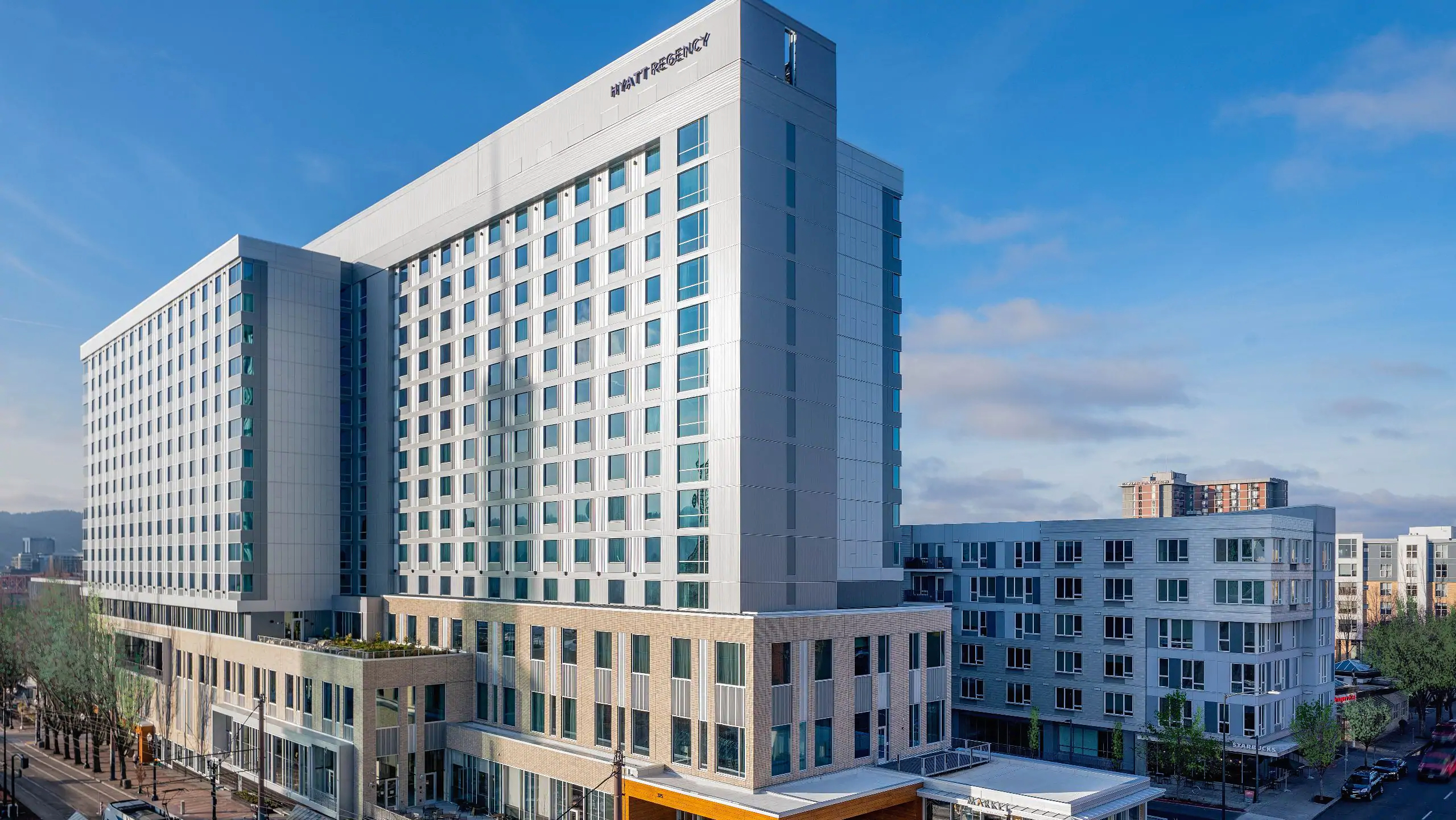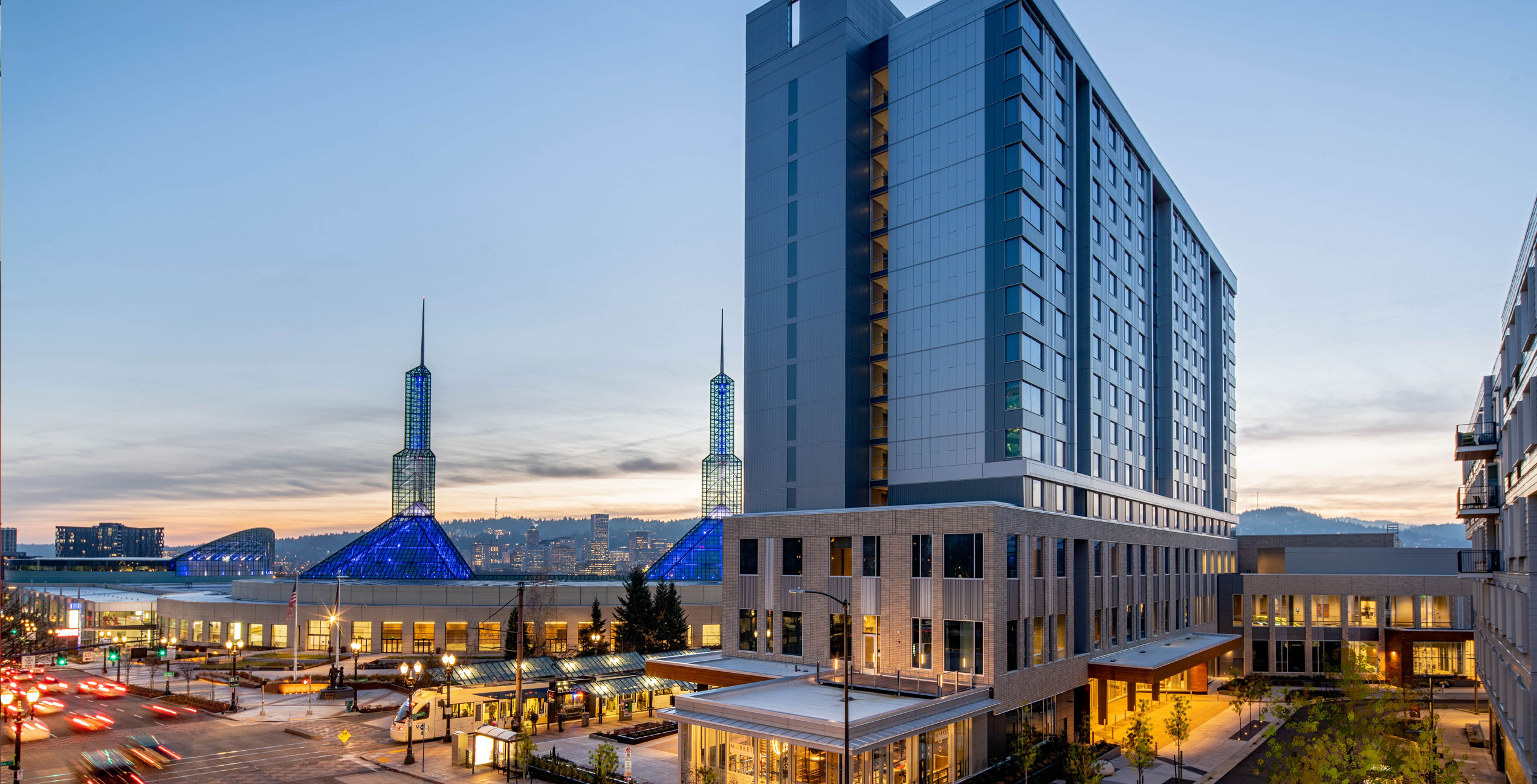 The Hyatt Regency at the Oregon Convention Center is located to the north of the existing Oregon Convention Center in downtown Portland. This full-service hotel will contain 600 rooms plus substantial meeting, food service, and retail space, and will be owned and operated by Hyatt Hotels. The hotel development will serve to attract larger conventions to Portland and will also serve to spur additional economic development in the neighborhoods surrounding the convention center. The hotel will be located directly on the light rail serving the overall Portland metropolitan area with direct access to Portland International Airport.