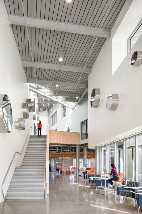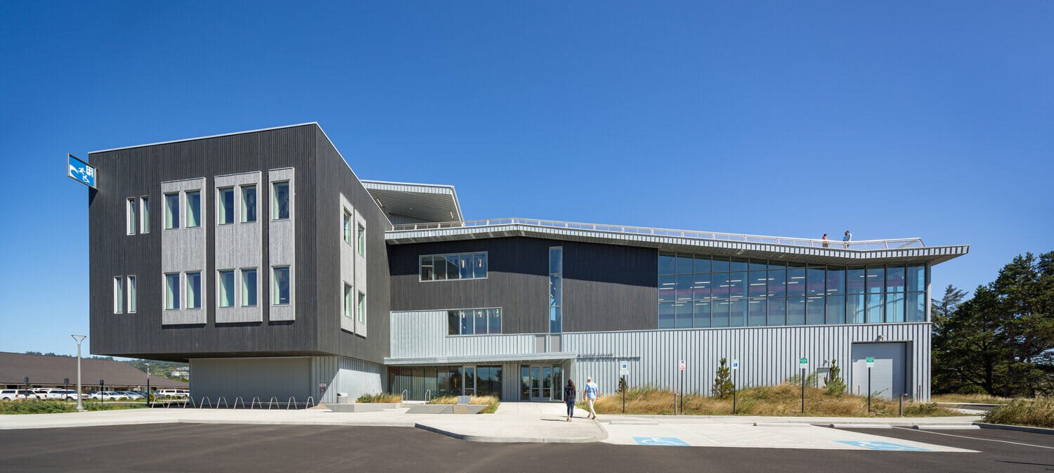 The Marine Studies Initiative Building is a LEED Silver, 72,000 square foot state-of-the-art classroom and laboratory building located on the Oregon State University Hatfield Marine Science Center campus. A 3-story core building includes research & teaching labs, classrooms, and office space. It connects to a 2-story structure that features community space, a 250-person auditorium, an “innovation lab” and other facilities. At a height of 47 feet, the building’s roof is designed to serve as a vertical evacuation site for more than 900 people if a tsunami strikes the area. In addition to housing Marine Studies Initiative programs, the new building provides headquarters for OSU’s nationally recognized Marine Mammal Institute and its marine genetics and genomics programs.